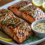 I gotta tell you – this isn’t just another salmon recipe. The sauce is basically liquid gold, and even my kids, who usually turn their noses up at fish, ask for seconds. The salmon turns out flaky and tender every single time, and that sauce… oh my goodness, that sauce! It’s creamy and tangy with just the right balance of lemon brightness and fresh dill flavor.