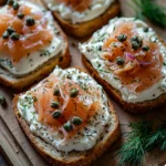 A delicious smoked salmon dish served with a creamy spread, perfect for brunch or appetizers.
