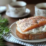 • Blend softened cream cheese with fresh herbs like dill, basil, or parsley. Add a hint of garlic powder or onion powder for extra depth. Spread onto your bread or bagel and top with smoked salmon slices.